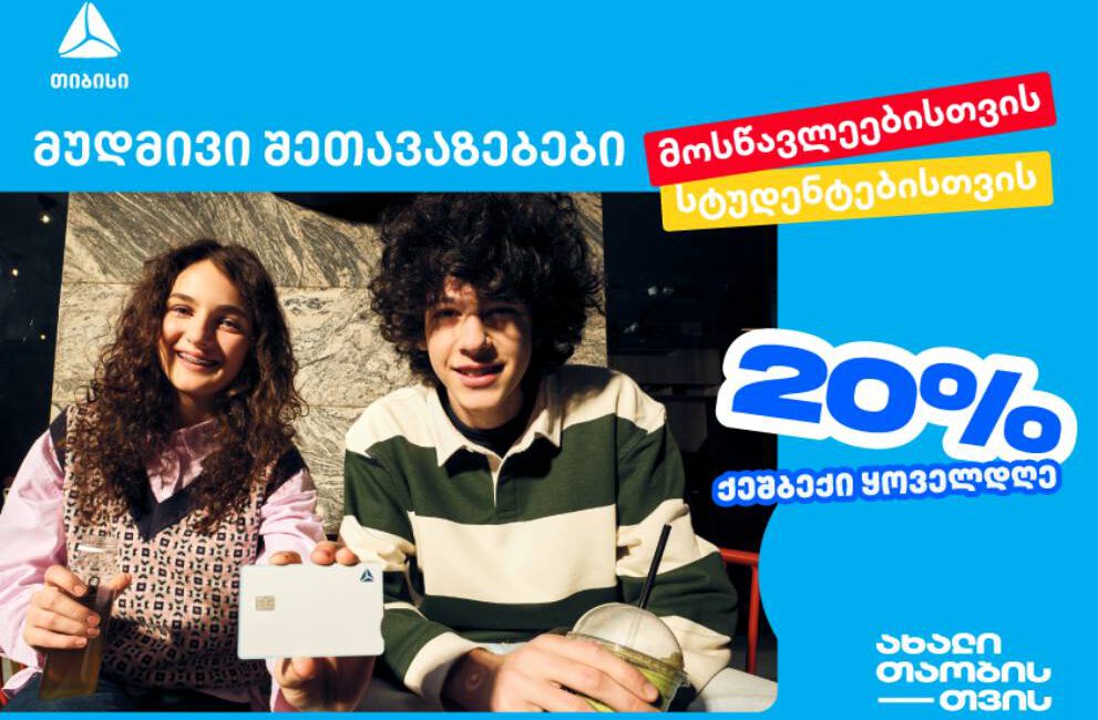 მუდმივი შეთავაზებების შესახებ დაწვრილებით ინფორმაციას გაეცანით ბმულზე: TBC ახალი თაობისთვის – დაიბრუნე 20%
