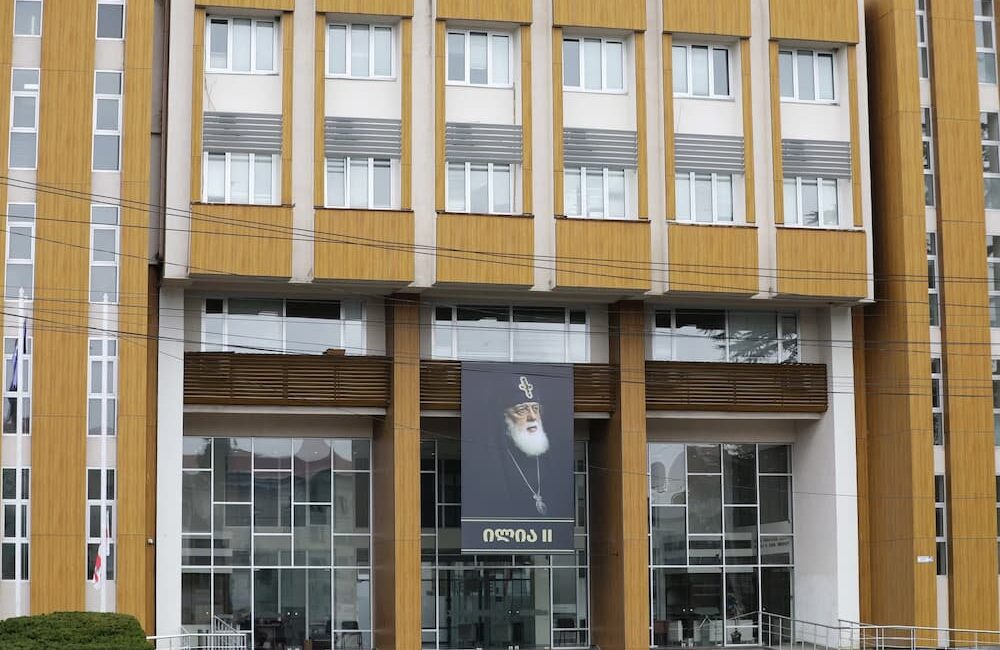 გუბერნიის ადმინისტრაციის შენობის ფასადზე პატრიარქის გამოსახულებით ბანერი განთავსდა