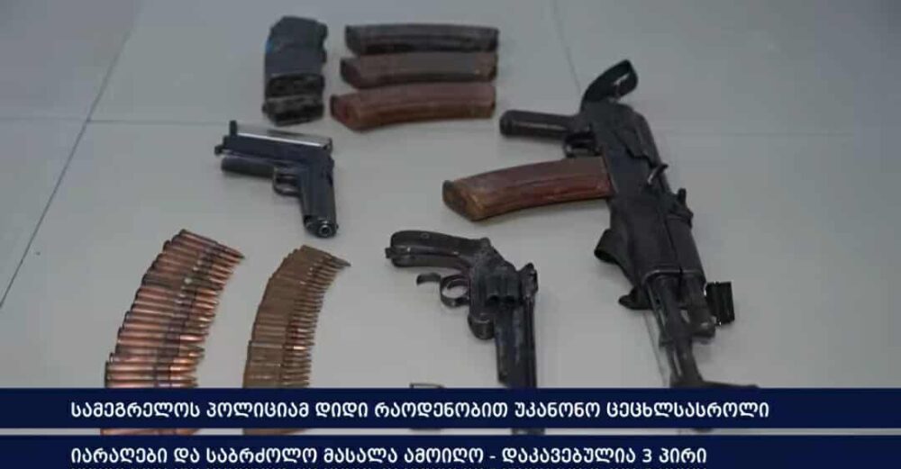 “სამართალდამცველებმა დაკავებულების პირადი, საცხოვრებელი სახლების, დამხმარე სათავსოებისა და ავტომობილების ჩხრეკის შედეგად, ნივთმტკიცებად სხვადასხვა ტიპის ცეცხლსასროლი იარაღი და საბრძოლო მასალა ამოიღეს, მათ შორის: 2 ავტომატური ცეცხლსასროლი იარაღი, 7 მჭიდი, 164 ვაზნა, რევოლვერი, პისტოლეტი, ერთლულიანი შაშხანა, კაფსულ-დეტონატორები და ფეთქებადი ნივთიერება ტროტილი.