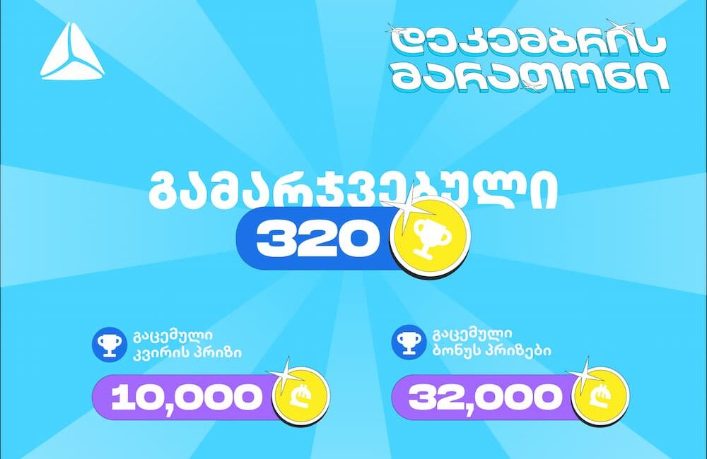 მარათონის პირველი სათამაშო კვირის შემდეგ, 320 გამარჯვებულზე ბონუს პრიზებად უკვე 32 000 ლარი გაიცა. შეგახსენებ, რომ თუ მილიონ მონეტას დააგროვებ, შენც გახდები 100 ლარის მფლობელი.