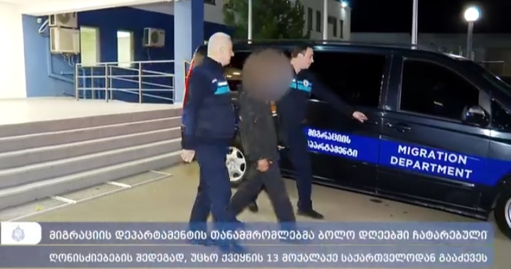 “მიგრაციის დეპარტამენტის მიერ ჩატარებული კომპლექსური ღონისძიებების შედეგად, ქვეყნიდან გაძევებულ იქნა: თურქმენეთის, ირანის, კუბის, თურქეთის, ტაილანდისა და აზერბაიჯანის – ჯამში 13 მოქალაქე.