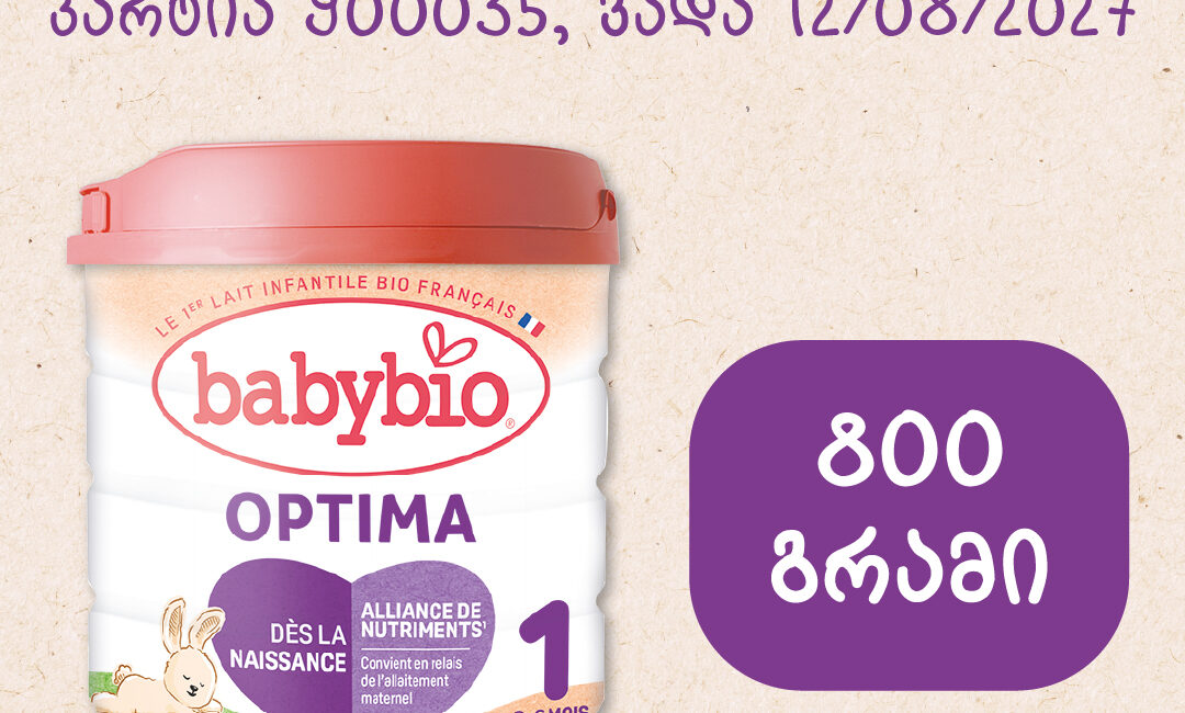 მწარმოებელმა კომპანიამ მიიღო გადაწყვეტილება, ბაზრიდან ნებაყოფლობით გაეწვია ჩვილის ფორმულის – BABYBIO OPTIMA 1-ის სამი პარტია, რომლიდან მხოლოდ 2 არის შემოსული საქართველოს ტერიტორიაზე: