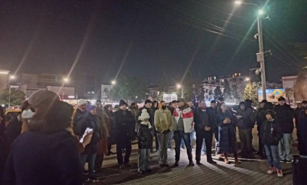 ინფორმაციისთვის: მას შემდეგ, რაც 28 ნოემბერს, ირაკლი კობახიძემ განაცხადა, რომ 2028 წლის ბოლომდე საქართველო ევროკავშირთან მოლაპარაკებების გახსნის საკითხს დღის წესრიგში არ დააყენებს, საქართველოს სხვადასხვა ქალაქში, მათ შორის ზუგდიდში, უწყვეტი საპროტესტო აქციები მიმდინარეობს.